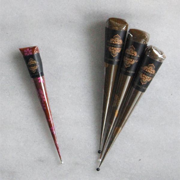 Henna Bees Budget bundle Box is presented in a regular box. It contains freshly made to order cones, and nail tint. These are 100% natural, safe and chemical free.