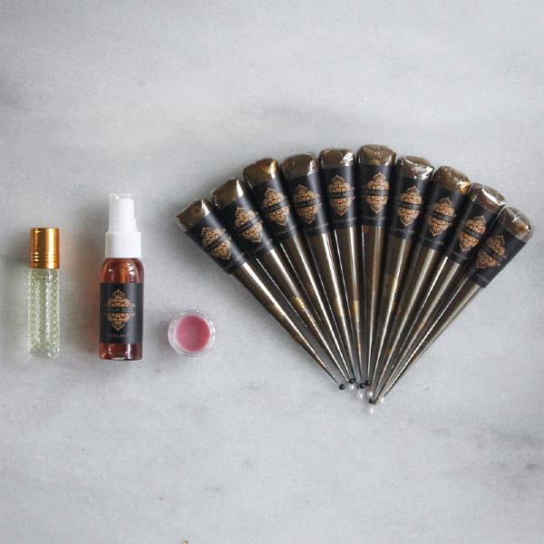 Henna Bees Luxury Bridal Box is presented in a clear box providing a beautiful presentation. This box is prefect for the bride. It contains freshly made to order cones, lemon sealant, aftercare oil and balm. These are 100% natural, safe and chemical free.